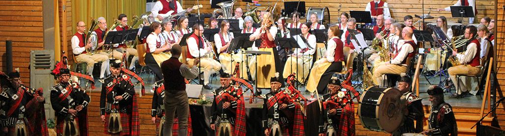 Auf ein weiteres Highlight durfte sich das Publikum im zweiten Konzertteil freuen: Die Highland Pipes and Drums of Waldsee marschierten mit schottischen Dudelsack-Klängen unter Scheinwerfer-Licht und mystischem Nebel in die Halle ein. Die dramaturgische Inszenierung war an dieser Stelle definitiv gelungen. Gemeinsam zeigten die Highland Pipes and Drums of Waldsee und die Musikkapelle Wolfegg einmal mehr, dass schottische und oberschwäbische Blasmusik hervorragend harmonieren. „Es ist uns jedes Mal eine Freude, gemeinsam mit der Musikkapelle Wolfegg vor einem solch geilen Publikum zu spielen“, bedankte sich Pipe Major Frank Gühring bei den anwesenden Gästen.
